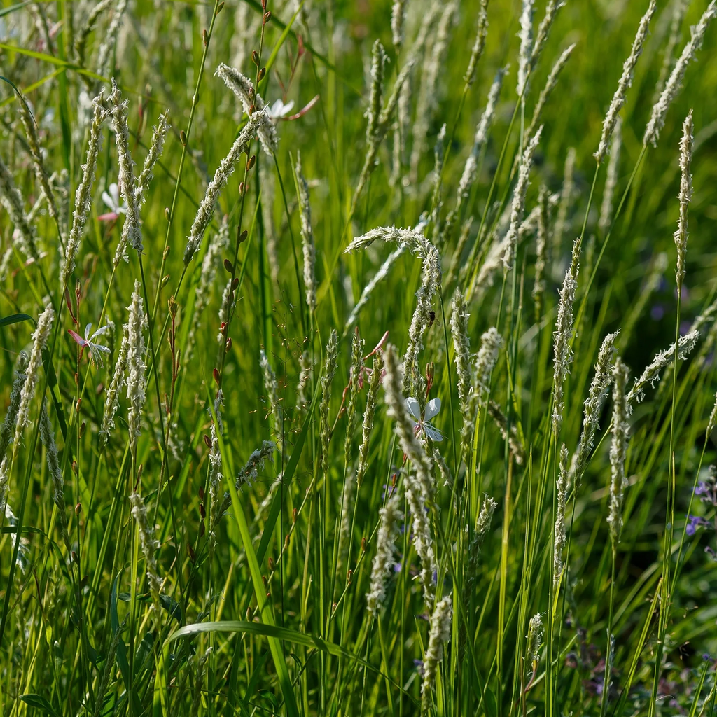 Bloei: Van augustus tot oktober met fijne, zilvergrijze bloeiaren die luchtig boven het blad uitsteken.